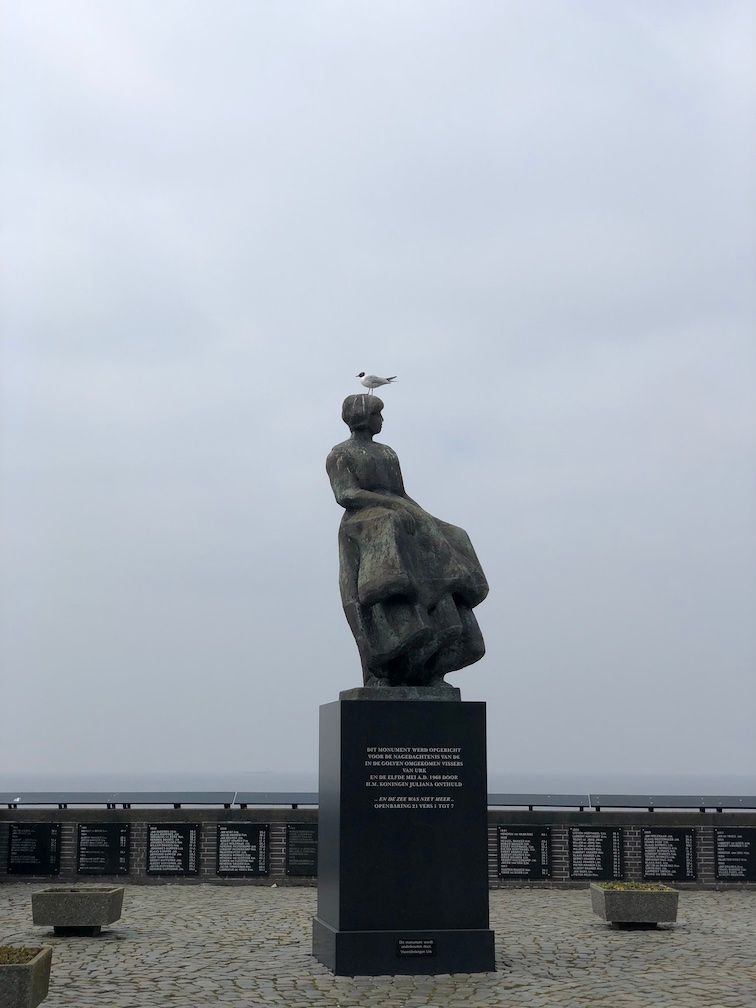 Aan het water staat een monument van een vrouw. Zij kijkt naar zee. Ze wacht op haar man, maar haar man is nooit teruggekomen. Er zijn eind 19e, begin 20e eeuw veel vissers verdronken in zee. Je ziet bij het monument heel veel marmeren platen. Op deze platen staan de namen van de vissers uit Urk die zijn verdronken in zee.